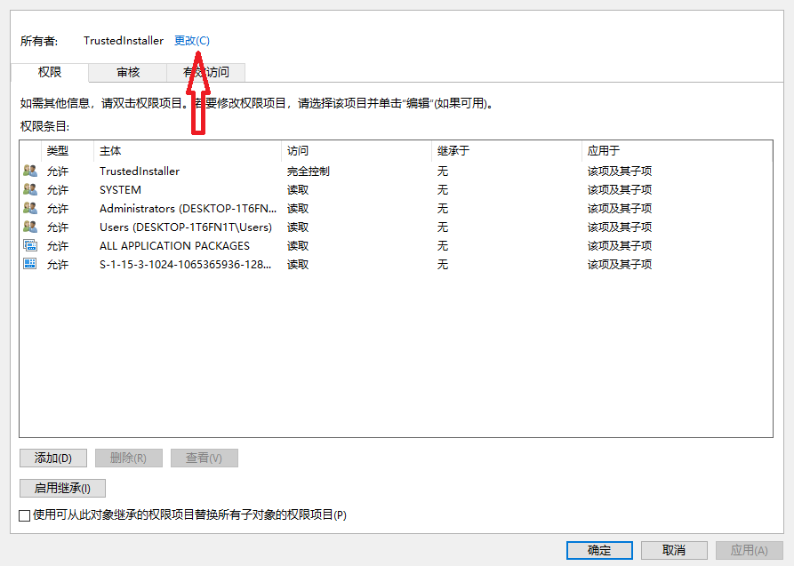 5.根据图片中的箭头指示,将所有者改为自己的用户名